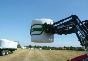 Погрузчик круглых тюков McHale R5 — это идеальная машина для сбора круглых тюков, которые были оставлены на боку на поле.